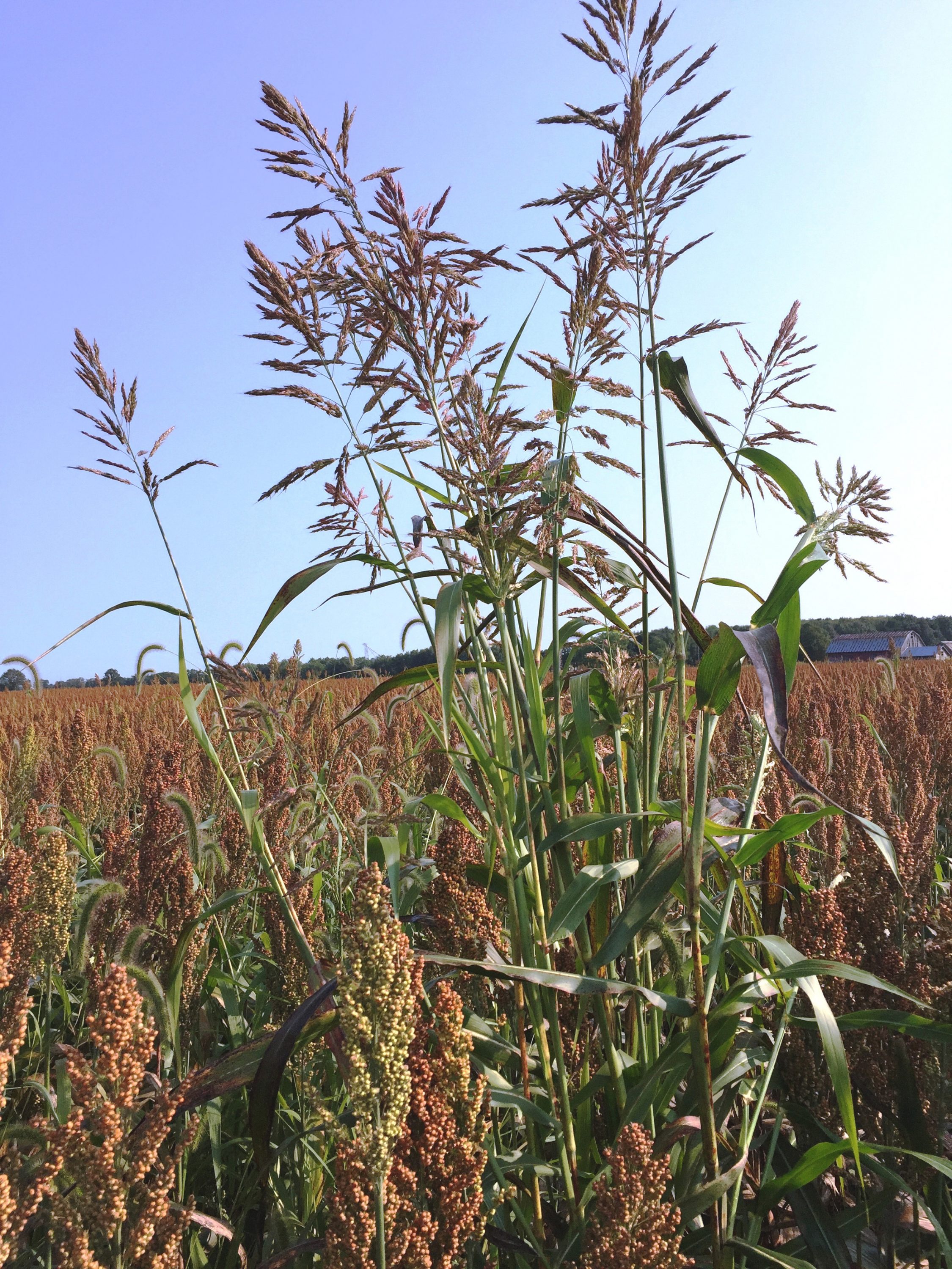 These plants are usually similar in height to the desired hybrid but may have very different seed color or panicle shape. Seed colors may be red, bronze, yellow, brown or intermediate shades. These off-type plants are a result of foreign pollen, which is usually from grain sorghum, that contaminates the seed production field. Since these plants are grain sorghum, they are of little consequence in most commercial fields.