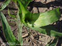 When glyphosate drift is suspected, look for a pattern of injury in the field. Injury symptoms are worse closer to the source of the drift and include discoloration in the form of reddening or browning of the tissue or even a bleaching effect. Severely injured sorghum also will be stunted.