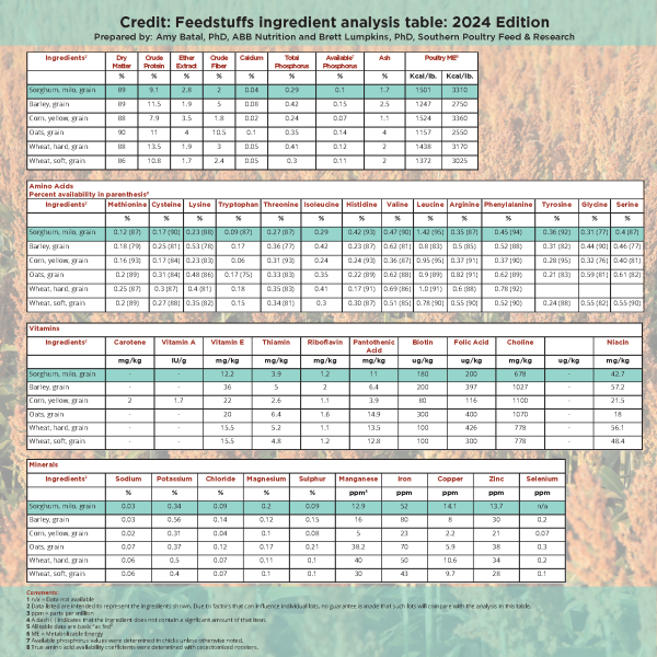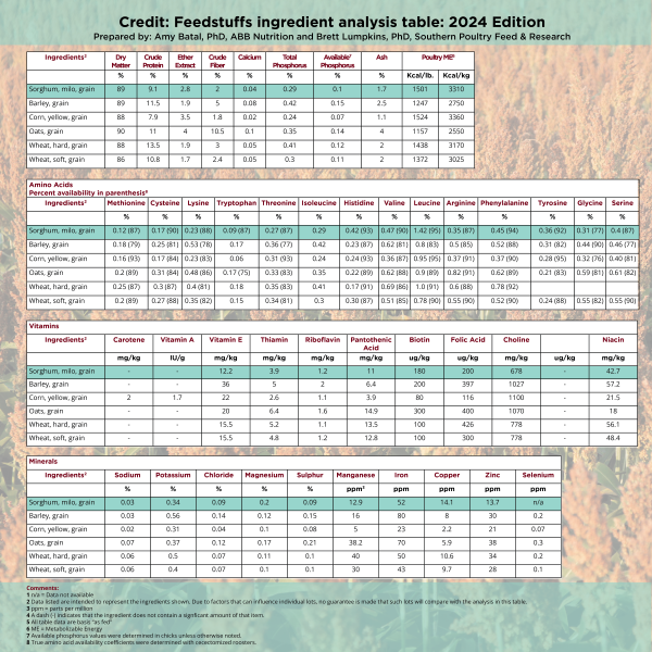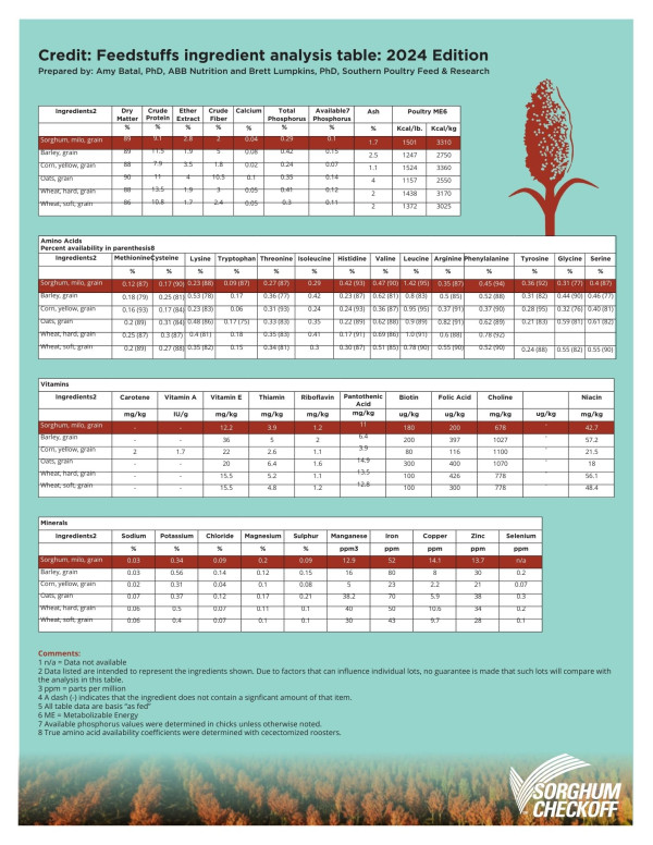 - Protein Content: U.S. grain sorghum is higher in crude protein than corn and can be effectively supplemented to support up to 30% of the protein requirements in poultry diets.